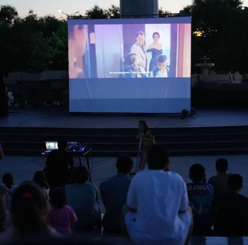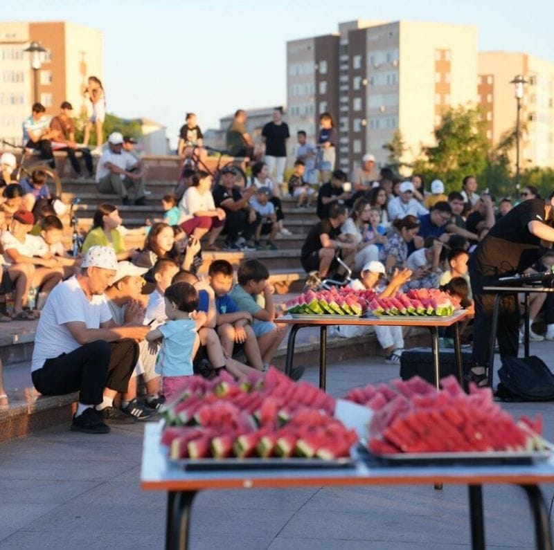 В рамках «Арбуз PARTY» жителям и гостям раздавали сочные ломти арбузов, а после был организован кинопоказ фильма «Қашан үйленесің».
