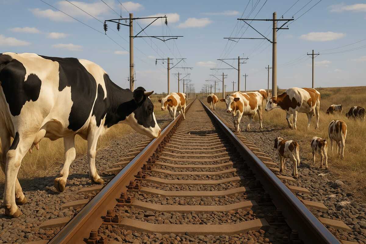 Анализ состояния безопасности движения поездов вызывает серьезную обеспокоенность, так как увеличивается количество экстренных торможений составов из-за внезапного выхода безнадзорного скота на железнодорожный путь. Безнадзорно пасущийся скот вблизи железной дороги нередко становится причиной нарушения нормальной работы железнодорожного транспорта, это приводит к задержке поездов, порче локомотивов и вагонов, к несвоевременной доставке пассажиров и, самое главное, несет опасность для жизни пассажиров. В очередной раз напоминаем: железная дорога — это зона повышенной опасности! Выпас скота должен проходить под присмотром пастуха или на привязи.