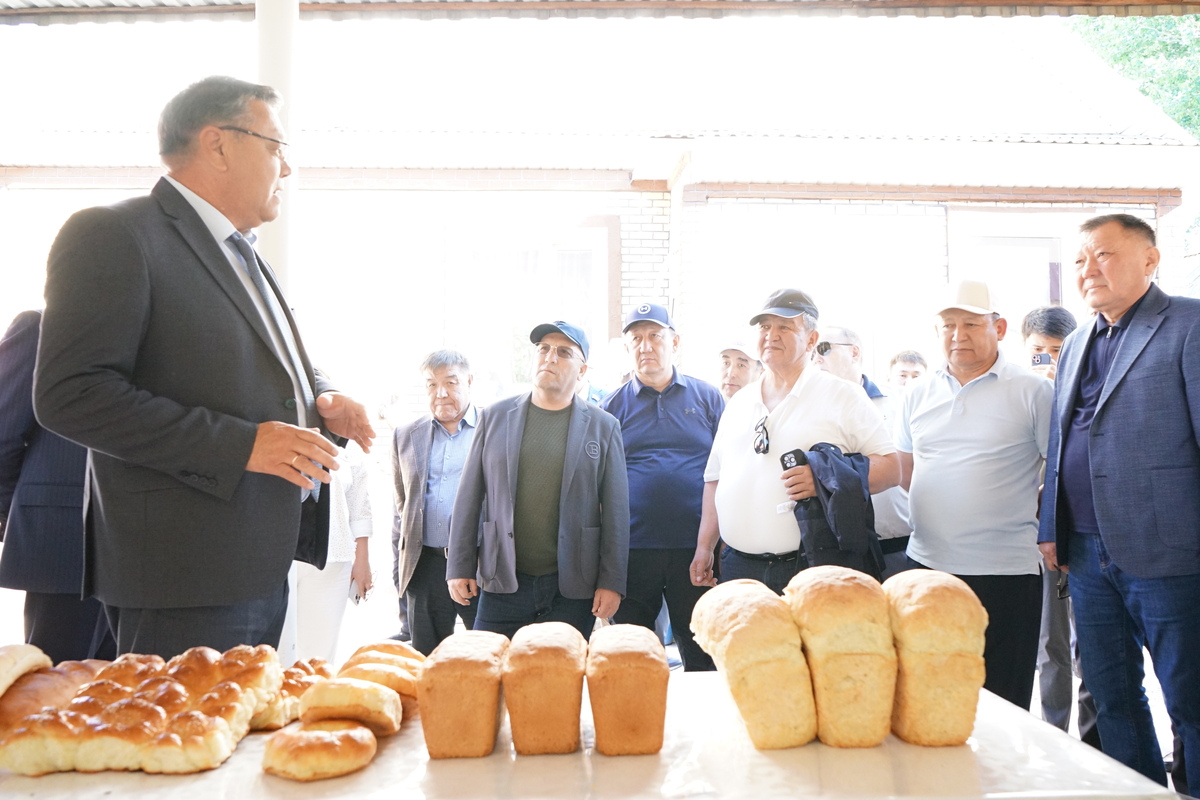 Первым объектом посещения стало предприятие по производству хлебобулочной продукции, расположенное в селе Койлык. Более 15 лет пекарня под руководством индивидуального предпринимателя Гульнар Исапановой обеспечивает местных жителей свежей и качественной продукцией.