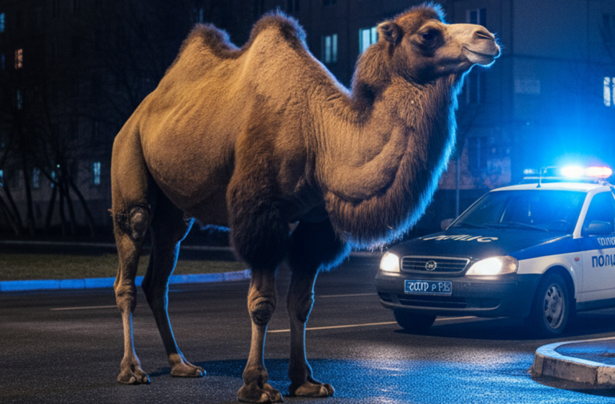 Видео с животным распространяется в соцсетях. На кадрах взрослый двугорбый верблюд, который в темное время суток разгуливает по ночному городу, мешая движению автомашин.