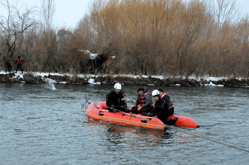 В ходе учений была отработана эвакуация 70 человек из зоны подтопления в ближайший пункт эвакуации, находящийся в начальной средней школе села Сарыбулак с обеспечением спальными местами и горячим питанием.