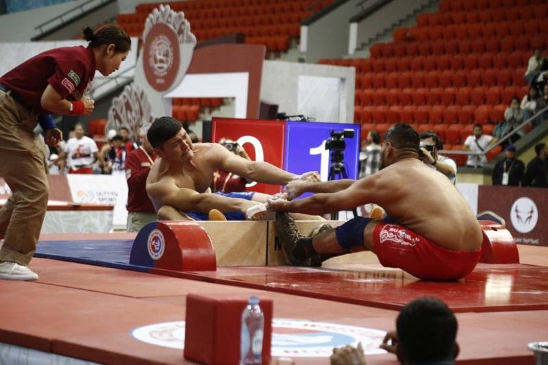 Мас-рестлинг: В рамках Всемирных игр кочевников в Казахстане закончились соревнования по мас-рестлингу — национальному виду спорта народа Саха. Бронзовую медаль в категории до 75 кг в поединке с монгольской спортсменкой для казахстанской сборной завоевала сегодня Ольга Душаева. Среди мужчин также бронзу Казахстану нам принес Еркебулан Ерлан в категории до 105 кг. Он вышел победителем из схватки с пакистанцем.
